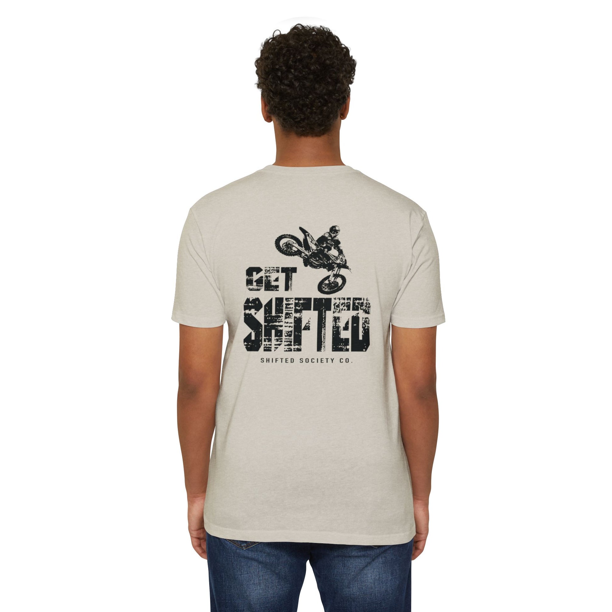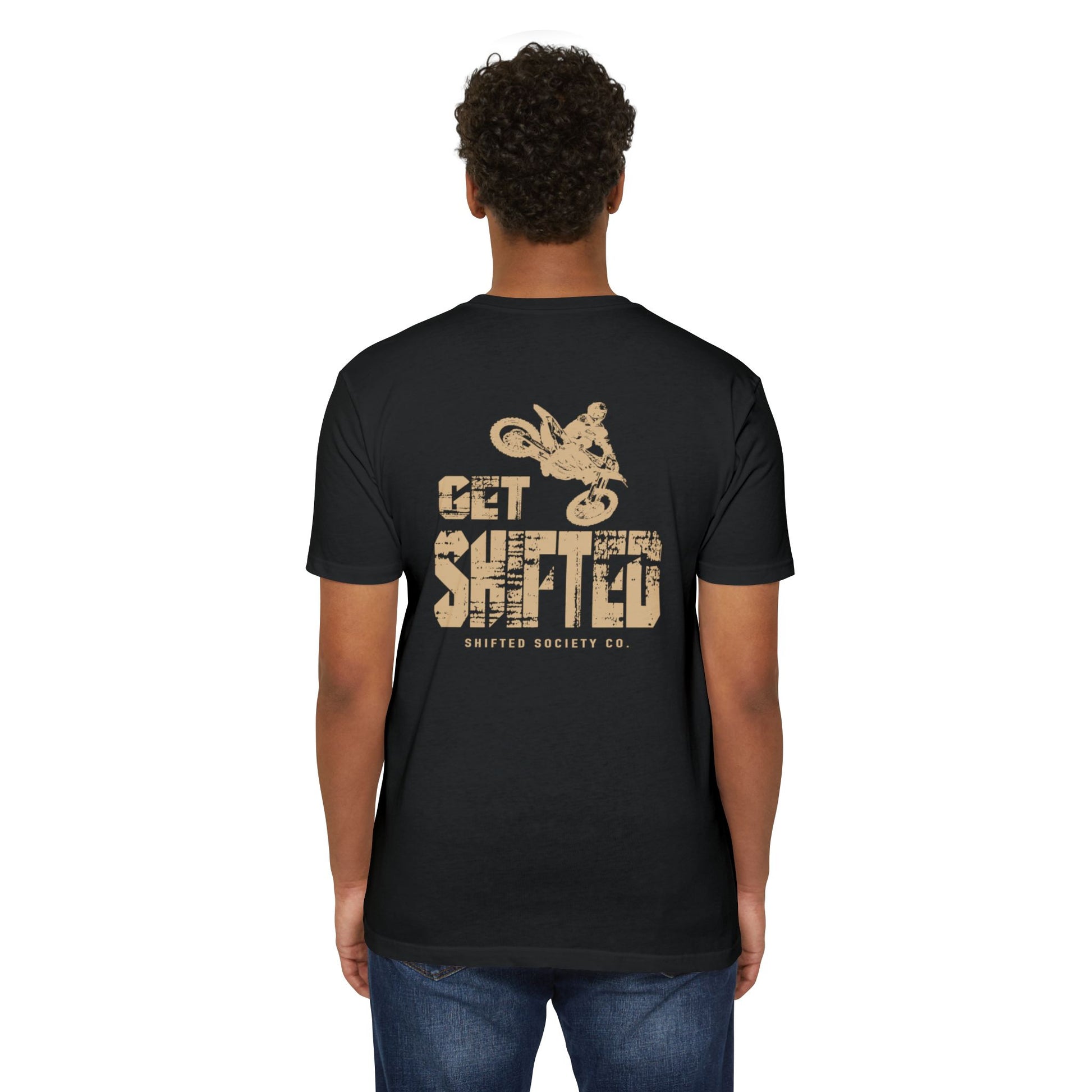 The Get Shifted design represents commitment to progression—on the bike, on the track, and in everyday life. Featuring a bold, distressed graphic with a high-energy moto silhouette, this piece is made to stand out without trying too hard. Gold ink is used on darker colorways for a premium contrast, while black ink keeps lighter shirts clean and aggressive.