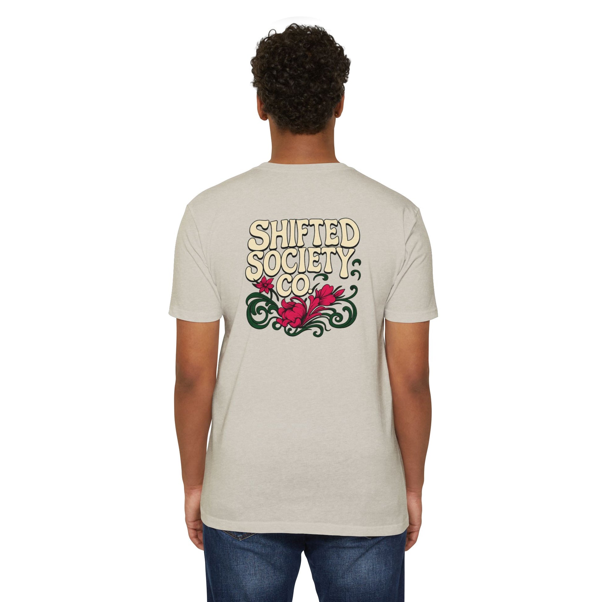 The Floral Tee by Shifted Society Co. features a classic floral design inspired by the beauty of nature. The 1x1 Ribbed collar ensures a well-fitted tee, while the self fabric shoulder tape provides clean lines. Made from a soft and luxurious blend of 60% combed, ring-spun cotton and 40% polyester, this light fabric shirt is perfect for everyday wear or even on your next adventure. Ideal for those who appreciate unique, trendy designs, and want to be part of the Shifted community.