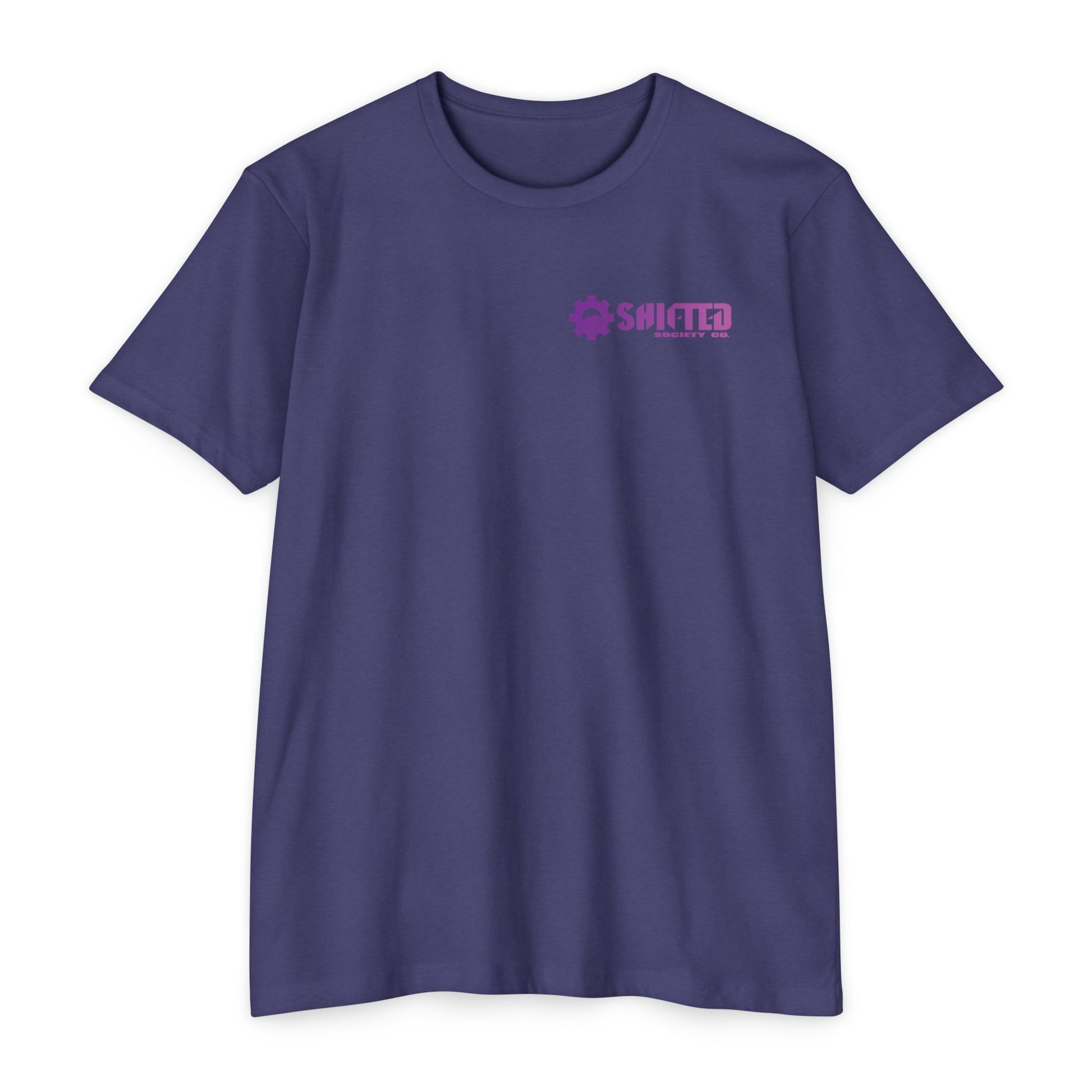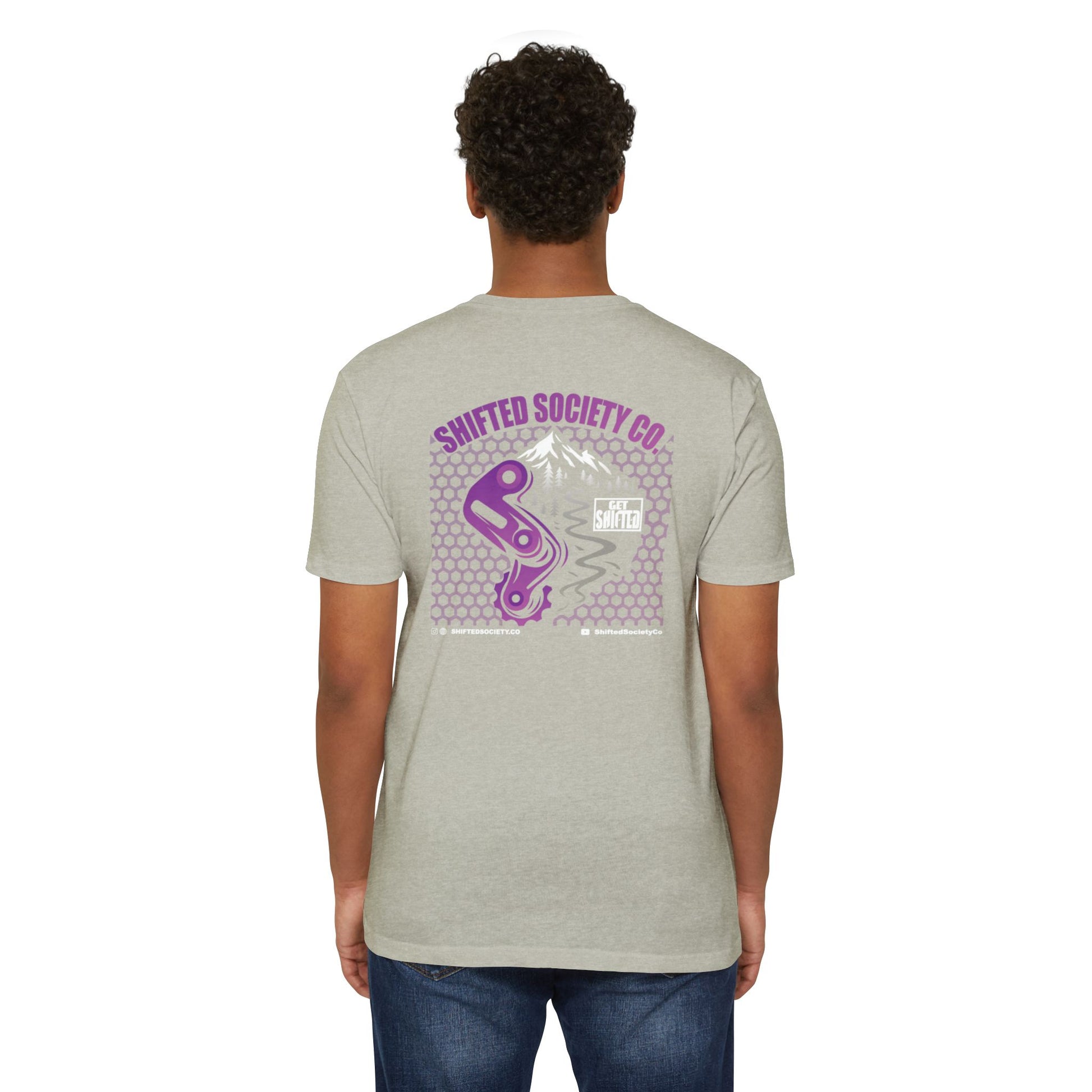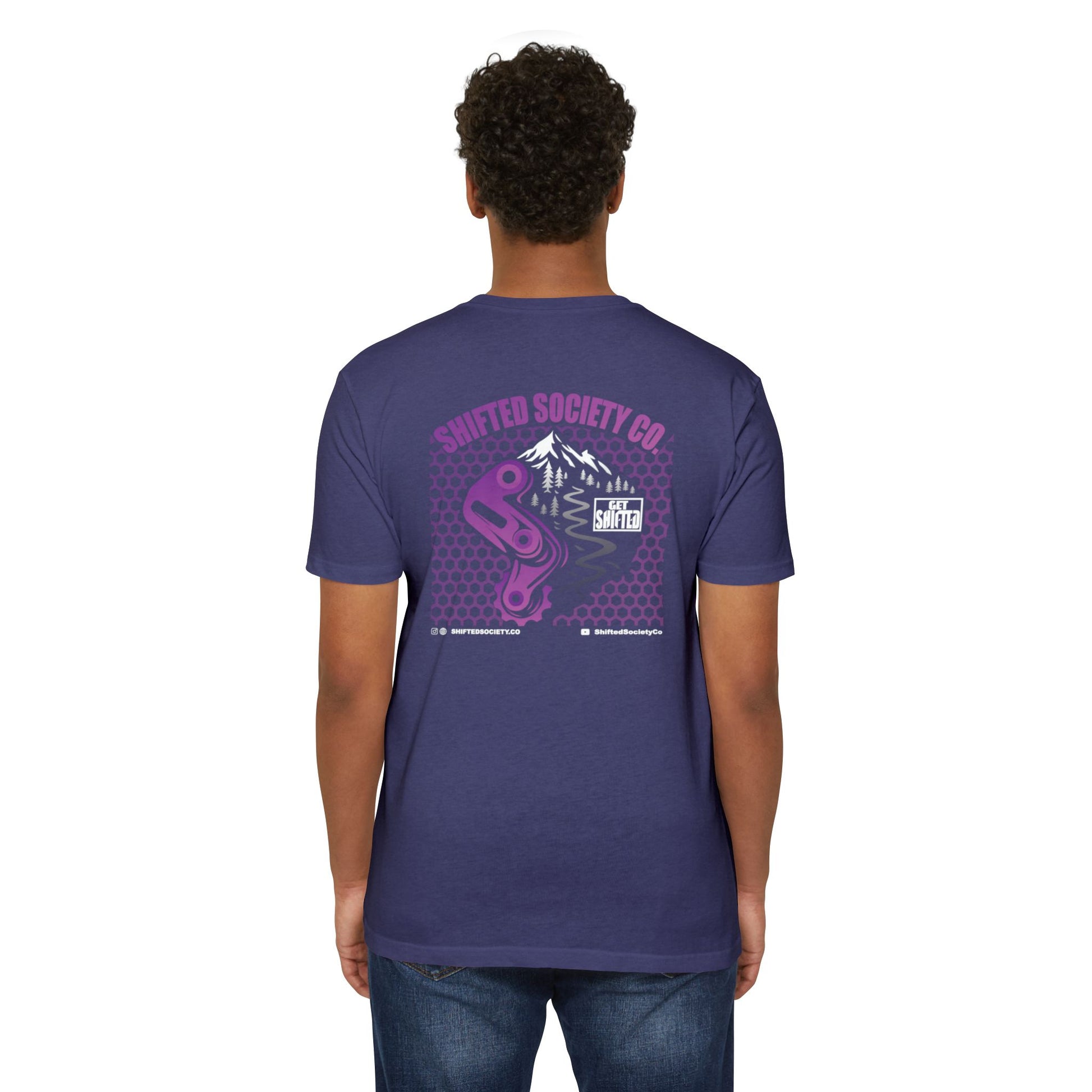 The Purple Derailleur Tee by Shifted Society Co. features our Mountain Bike design that reminds you of the feeling to "Get Shifted". The 1x1 Ribbed collar ensures a well-fitted tee, while the self fabric shoulder tape provides clean lines. Made from a soft and luxurious blend of 60% combed, ring-spun cotton and 40% polyester, this light fabric shirt is perfect for everyday wear or even on your next adventure. Ideal for those who appreciate unique, trendy designs, and want to be part of the Shifted community.